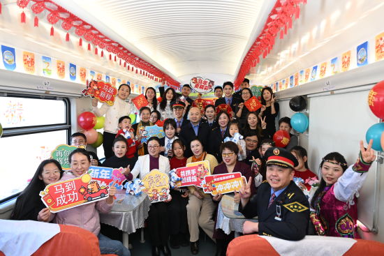 K2623次“濱疆號”列車是連接“北方明珠”大連與“東亞之窗”滿洲里的重要紐帶,縱貫沈陽、長春、哈爾濱、海拉爾等多座城市,不僅承載著旅客團圓的期盼,也促進著兩地文化交融與情感相連。春運首日,列車長劉森與乘警丁非凡共同主持活動,生動闡釋“濱疆同行、連滿同心”的服務(wù)理念,讓旅客在旅途中深切感受列車文化與鐵路人的暖心相伴。